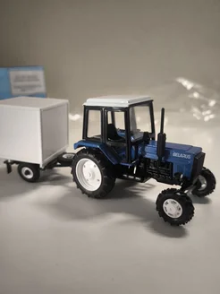 Коллекционная модель синий"Трактор МТЗ-82 с прицепом Будка"