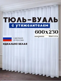 Тюль вуаль в спальню и гостиную длинная 600х230 см белая