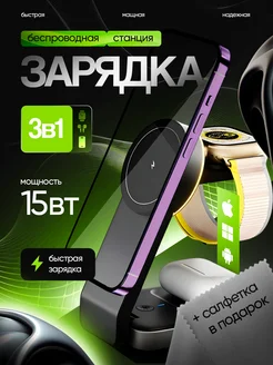 Беспроводная быстрая зарядка 3 в 1 для iPhone android
