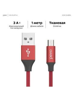 Кабель micro-USB для зарядки 2А, 1м, красный