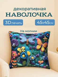 Наволочка декоративная на молнии 3D печать 45х45 см