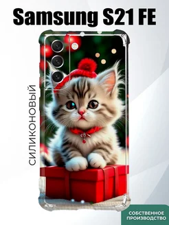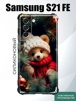 Чехол на Samsung S21FE с новогодним принтом медведь