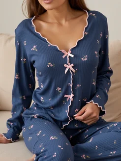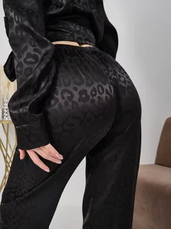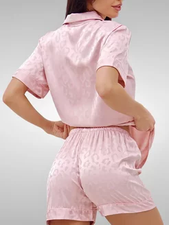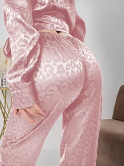 Пижама шелковая розовая со штанами и рубашкой комплект