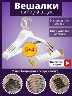 Вешалки-плечики из дерева, силиконовые вставки, 9 штук