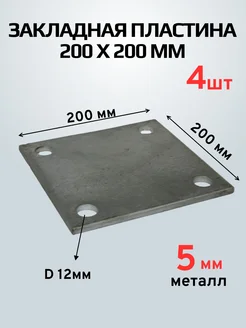 Закладная пластина с отверстиями 200х200 мм 5 мм 4 шт