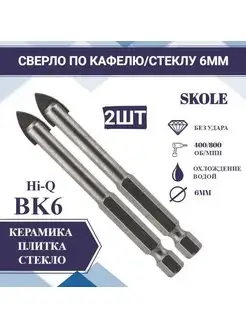 Сверло по керамограниту, стеклу и плитке 6мм 2шт