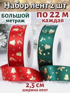 Новогодние ленты для подарков Набор 2 шт по 22 м