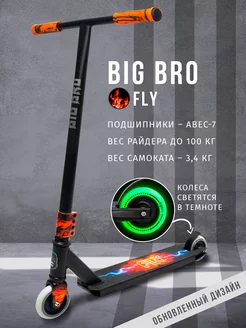 Самокат трюковый FLY RED светящиеся в темноте колеса