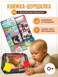 Мягкая книжка шуршалка для малышей с грызунком и зеркалом