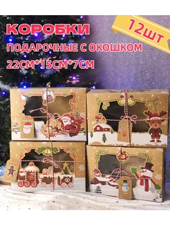Коробочки с окошком для новогодних подарков,набор 12шт