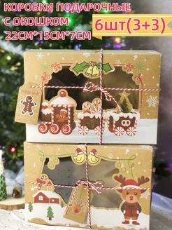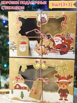 Коробочки с окошком для новогодних подарков,набор 6шт