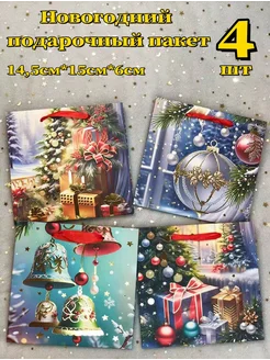 Новогодний подарочный пакет,14,5см*15см*6см,набор 4шт