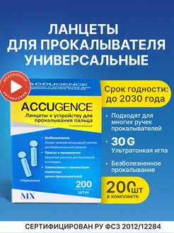Ланцеты для глюкометра универсальные, 200 шт(30G)