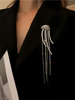 Брошь Медуза на пиджак с цепями и жемчугом