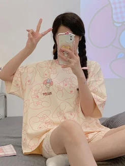 Пижама с шортами и футболкой для подростка домашняя