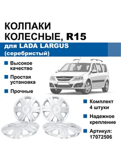 Колпаки R15 Lada Largus, серебро (4 шт.)