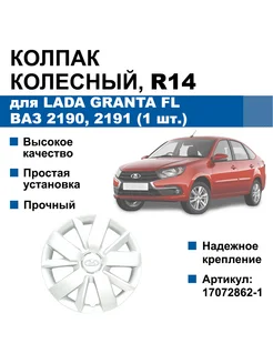 Колпак R14 Lada Granta FL ВАЗ 2190, 2191, серебро, 1 шт