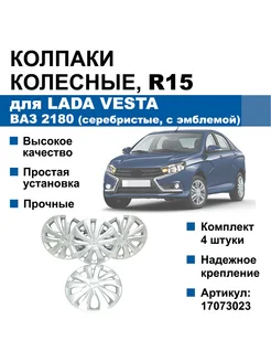 Колпаки R15 Лада Веста ВАЗ 2180 (серебро, ладья, 4 шт.)