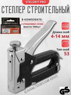 Степлер мебельный Stelgrit + скобы 6мм, 3уп по 1000шт