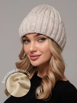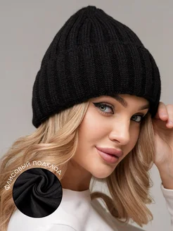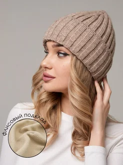шапка вязаная зимняя бини с флисом