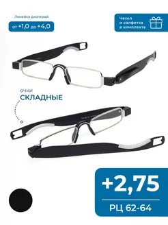 Ультратонкие очки для чтения пенснэ (+1.75) с футляром