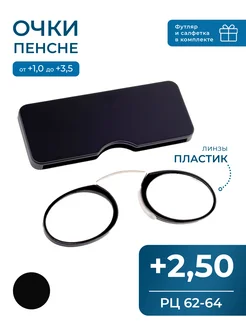 Корригирующие очки пенсне для чтения (+2.50) с футляром
