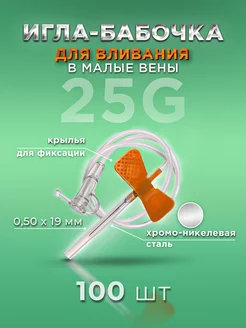 Катетер игла-бабочка 25G 100 штук