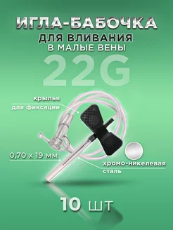 Катетер игла-бабочка 22G 10 штук