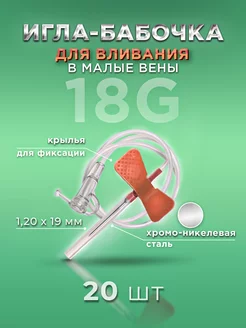 Катетер игла-бабочка 18G 20 штук
