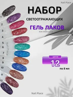 Светоотражающий гель лак для ногтей с блестками набор 12