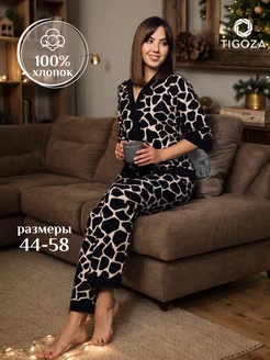 Хлопковая пижама со штанами и рубашкой большие размеры