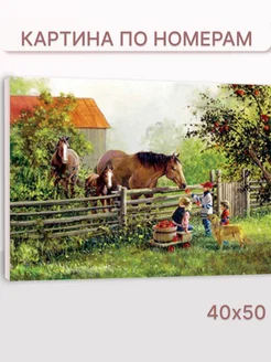 Картина по номерам на подрамнике 40х50 см Дети и лошади