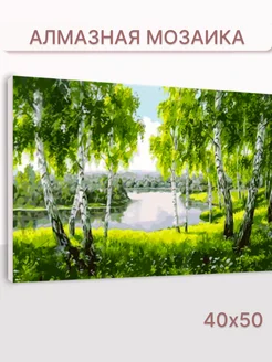 Алмазная мозаика на подрамнике 40х50 см Березы и река