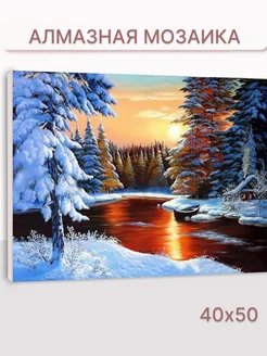 Алмазная мозаика на подрамнике 40х50 см Зимний пейзаж