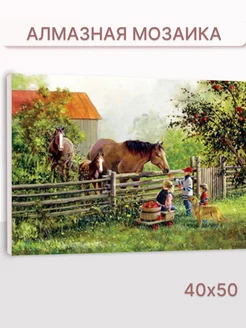 Алмазная мозаика на подрамнике 40х50 см Дети и лошади