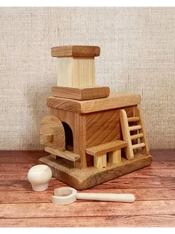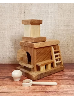 Печь русская с чугунком и ухватом деревянная игрушка сувенир