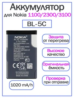 Аккумулятор Nokia BL-5C 6600, 3100, 1100, 6630 Оригинал