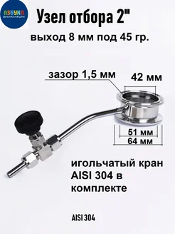 Узел отбора по жидкости 3 дюйма выход 8 мм, игольчатый кран
