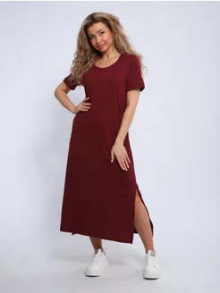 Платье-футболка длинное трикотажное без принта