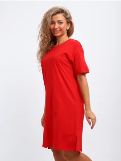 Туника-футболка прямого кроя хлопок красная