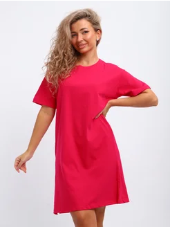 Туника-футболка прямого кроя хлопок малина