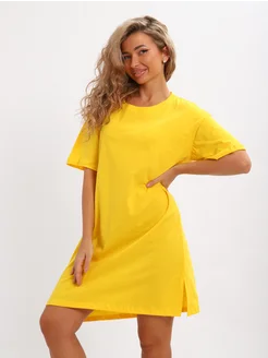 Туника-футболка прямого кроя хлопок желтая