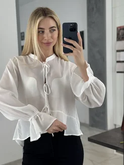 Блузка шифоновая с длинными рукавами на завязках в офис бохо