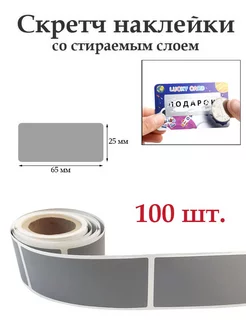 Скретч наклейки со стираемым слоем 25х65мм, 100шт