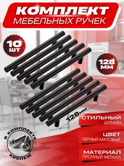 Ручки для мебели черные 128мм 10шт Фурнитура мебельная