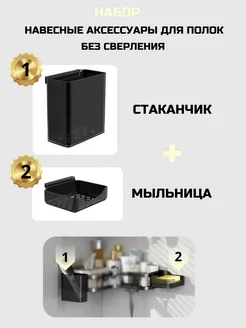 мыльница и стаканчик навесные для полок в ванную