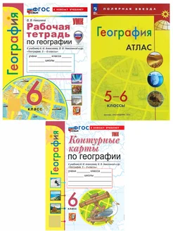 Комплект Рабочая тетр. Атлас Контурные География 6 класс