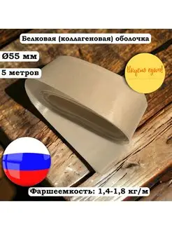 Белковая (коллагеновая) оболочка 55 мм, 5 метров, бесцветная