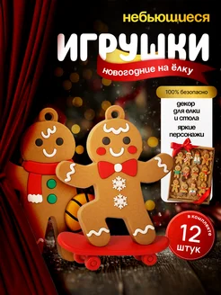 Пряничные человечки на елку игрушки небьющиеся набор 12 шт