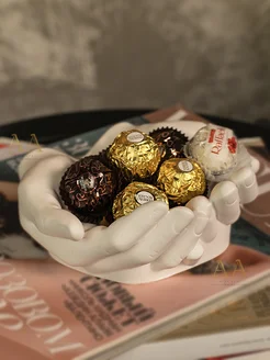 Конфетница белая руки на стол для ресепшен